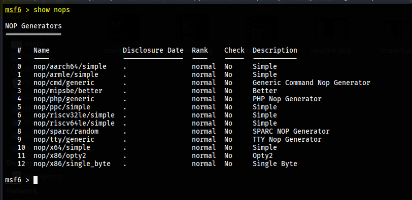 msf > show nops